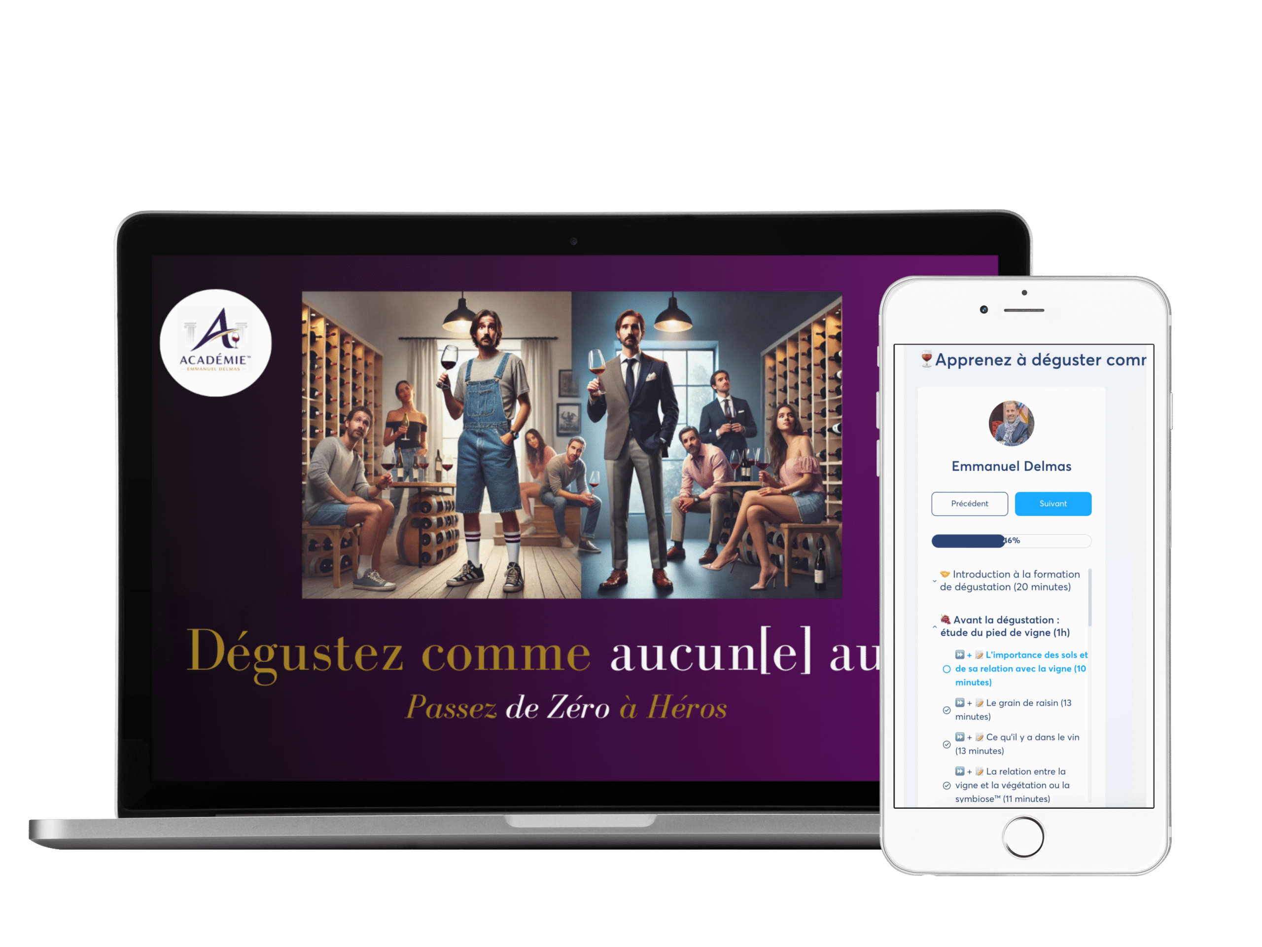 Rejoindre L’Académie™, c’est plonger dans un univers unique, à mes côtés, et découvrir le vin dans toutes ses dimensions. Ensemble, nous allons bien au-delà de la simple dégustation – nous allons faire de vous, de vrais experts.