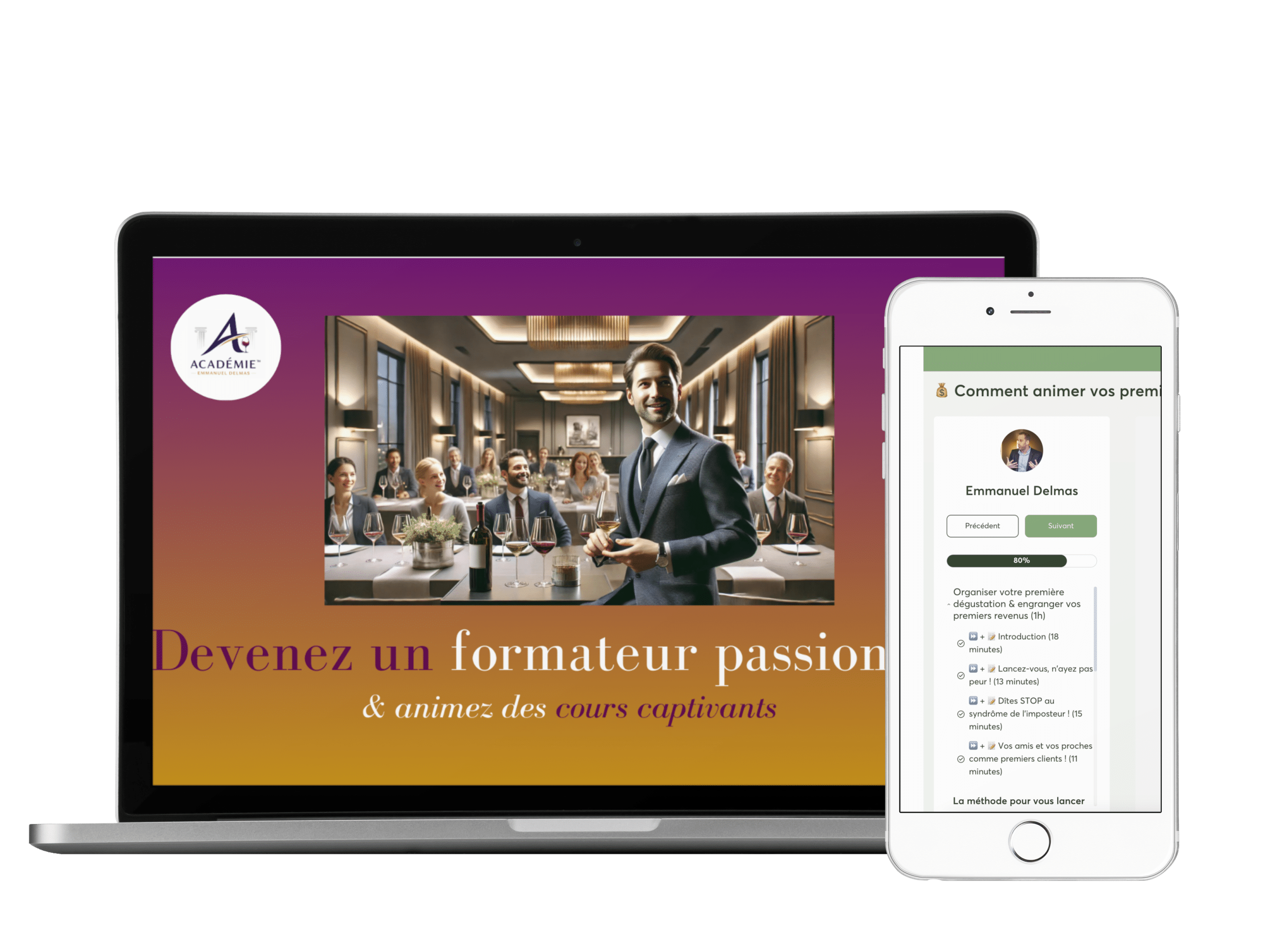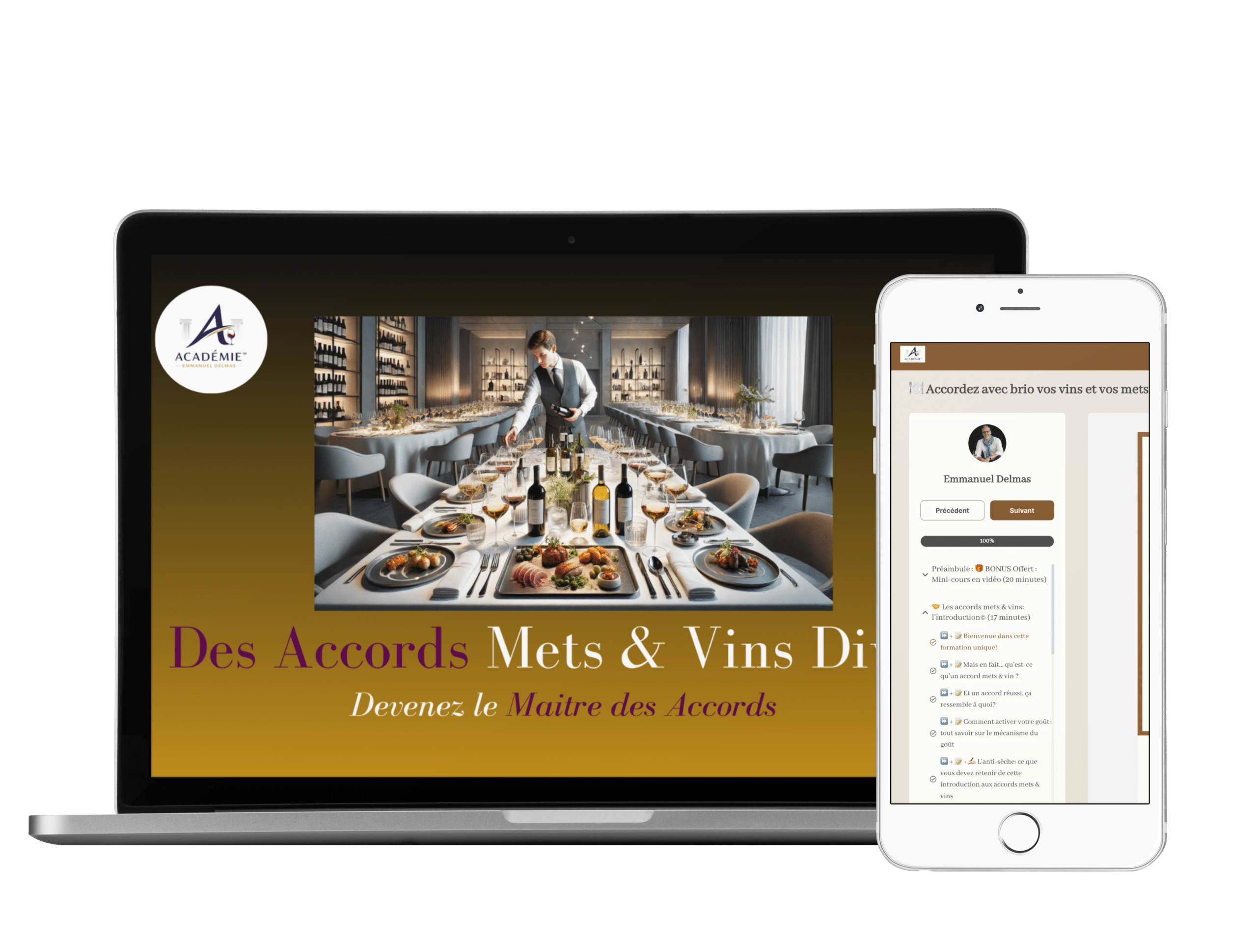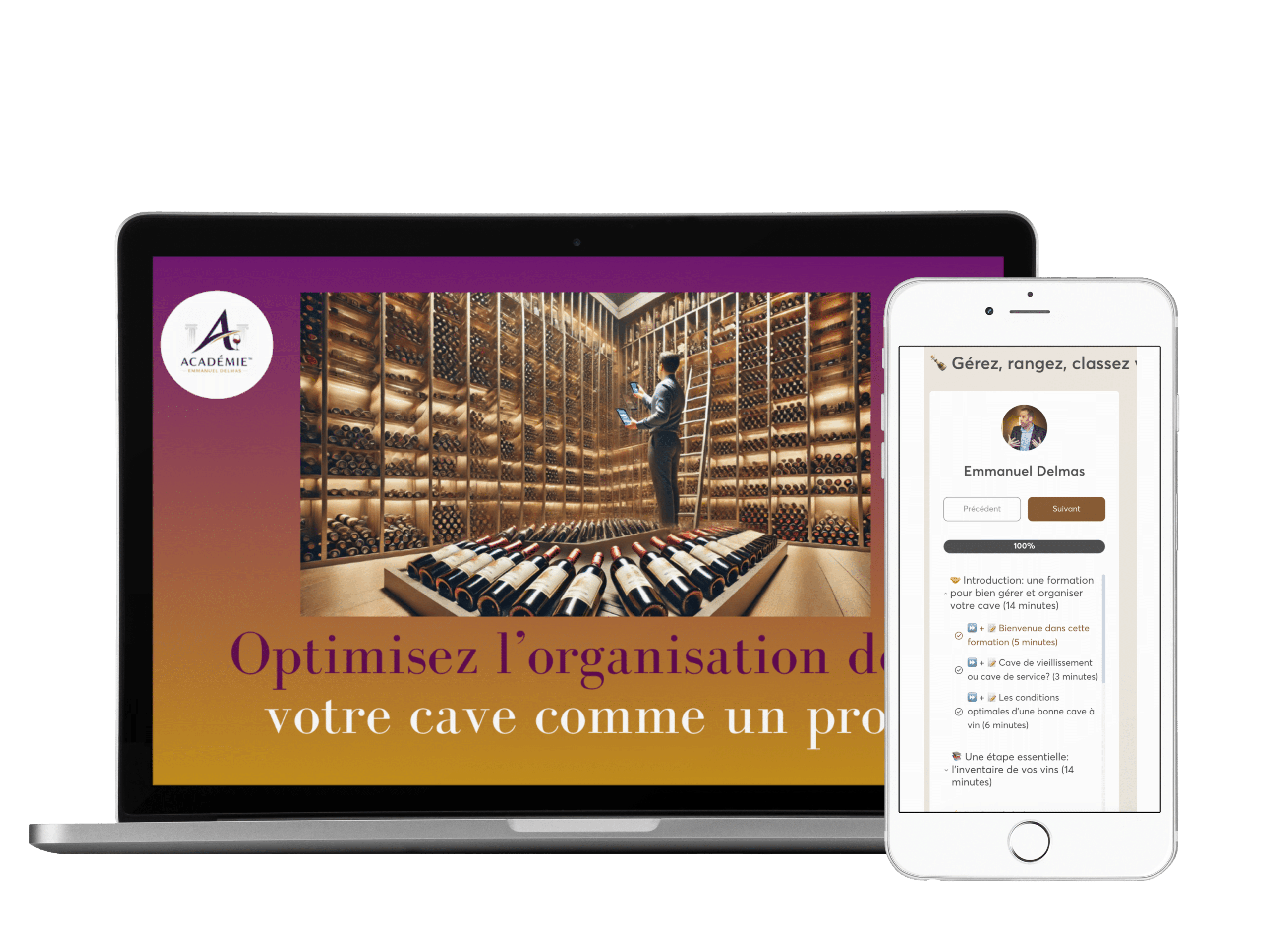 Mais mon rêve allait plus loin : offrir un programme complet, un écosystème de ressources pour transformer les passionnés en experts grâce à mon accompagnement. C’est de là qu’est née L’Académie™, un programme taillé pour vous, fait pour ceux qui veulent partager le vin, des accords mets et vins jusqu’à la maîtrise de leur cave.